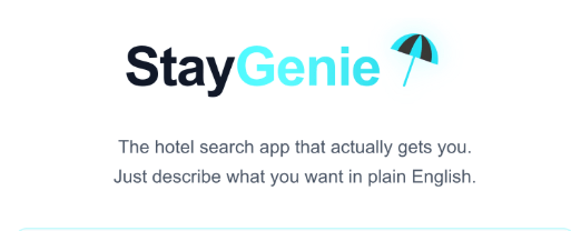 Booking.com and Expedia rely heavily on user-driven filters. AI is already transforming how people book flights and plan itineraries, and hotel search is the next big step. Travelers today want personalization, speed, and trust. They don’t want to sift through endless pages of irrelevant listings or risk landing somewhere that doesn’t meet expectations. AI-first approach that StayGenie has is paving the way for smarter travel decisions. The combination of verified data, personalization, and intuitive design makes hotel hunting almost effortless.