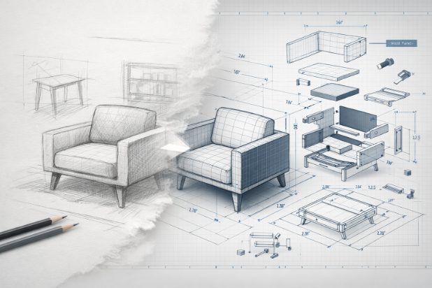 Furniture designers often think in terms of form, proportion, and experience. Manufacturers, on the other hand, must focus on materials, tolerances, machining processes, and assembly logic. Without detailed technical documentation, even the most elegant design can fail during production.