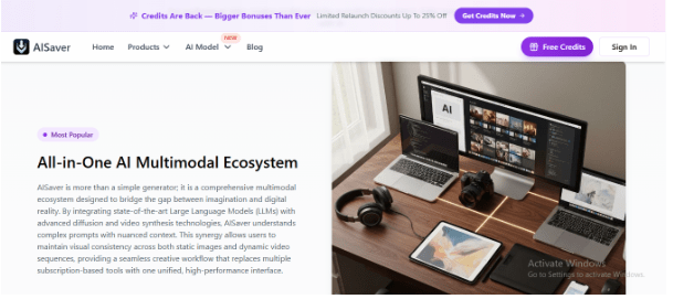 AISaver AI is an effective AI platform that assists the user in producing beautiful videos and pictures by using text prompts. It is targeted at creators, marketers, and beginners who do not want to work with complex editing tools and prefer blistering content fast. You can convert ideas into visuals in a matter of seconds with AISaver AI.